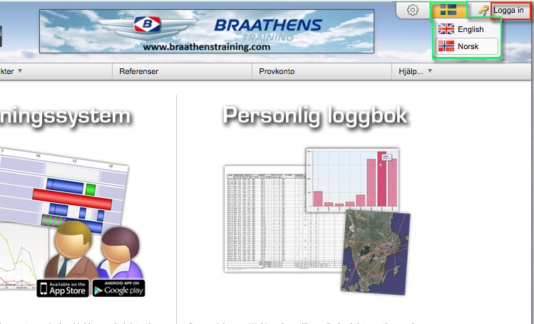Første gang du logger på er systemet satt opp med svensk språk, men dette endrer du en gang for alle ved å velge det norske flagget oppe til høyre i skjermbildet. Deretter trykker du på “Logg inn” knappen.