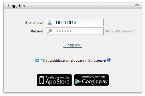 Førstegangs pålogging må gjøres fra PC eller Mac. Derette er det fritt fram å bruke mobilappene (se mer nedenunder).
