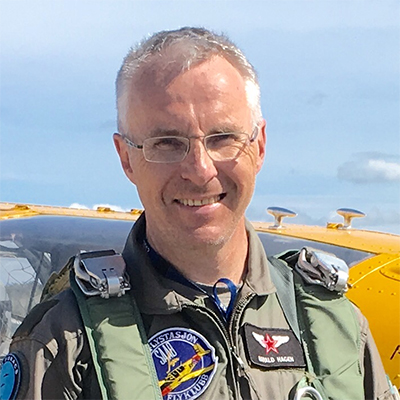 Roger har luftfart som levebrød (ingeniør innen sertifisering og testing i helikopterbransjen) og luftfart som hobby. Han tok PPL i Kjevik Flyklubb i 2001 og instruktørutdannelsen hos Oslo Flight Academy i 2025. Roger er operativ leder i SFFK og flyr akro og formasjon i klubben. Han er innehaver av PPL(A) og CRI(A).